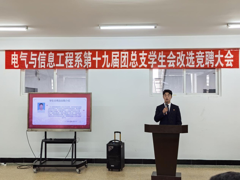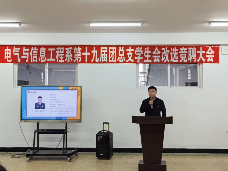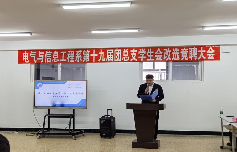 10月15日电气与信息工程系第十九届团总支学生会改选竞聘大会在主教楼412报告厅隆重召开。