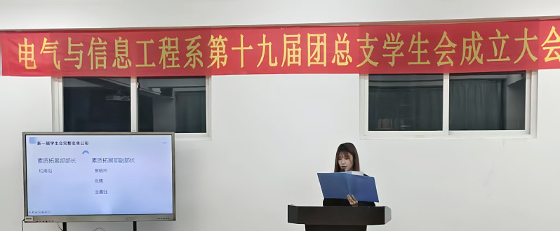 青春新征程,携手共前行。学生会谱写新篇章,同心协力创造辉煌。为进一步提高电信系学生管理工作、完善团总支学生会工作机制、培养学生自主管理能力,电气与信息工程系第十九届团总支学生会成立大会于2025年10月29日在主教学楼412隆重举行。莅临本次大会的领导嘉宾有电气与信息工程系团总支书记路茗荟、电气与信息工程系辅导员老师刘宸序以及电气与信息工程系第十九届团总支学生会全体成员,会议由学生会副主席谢云竹主持。
